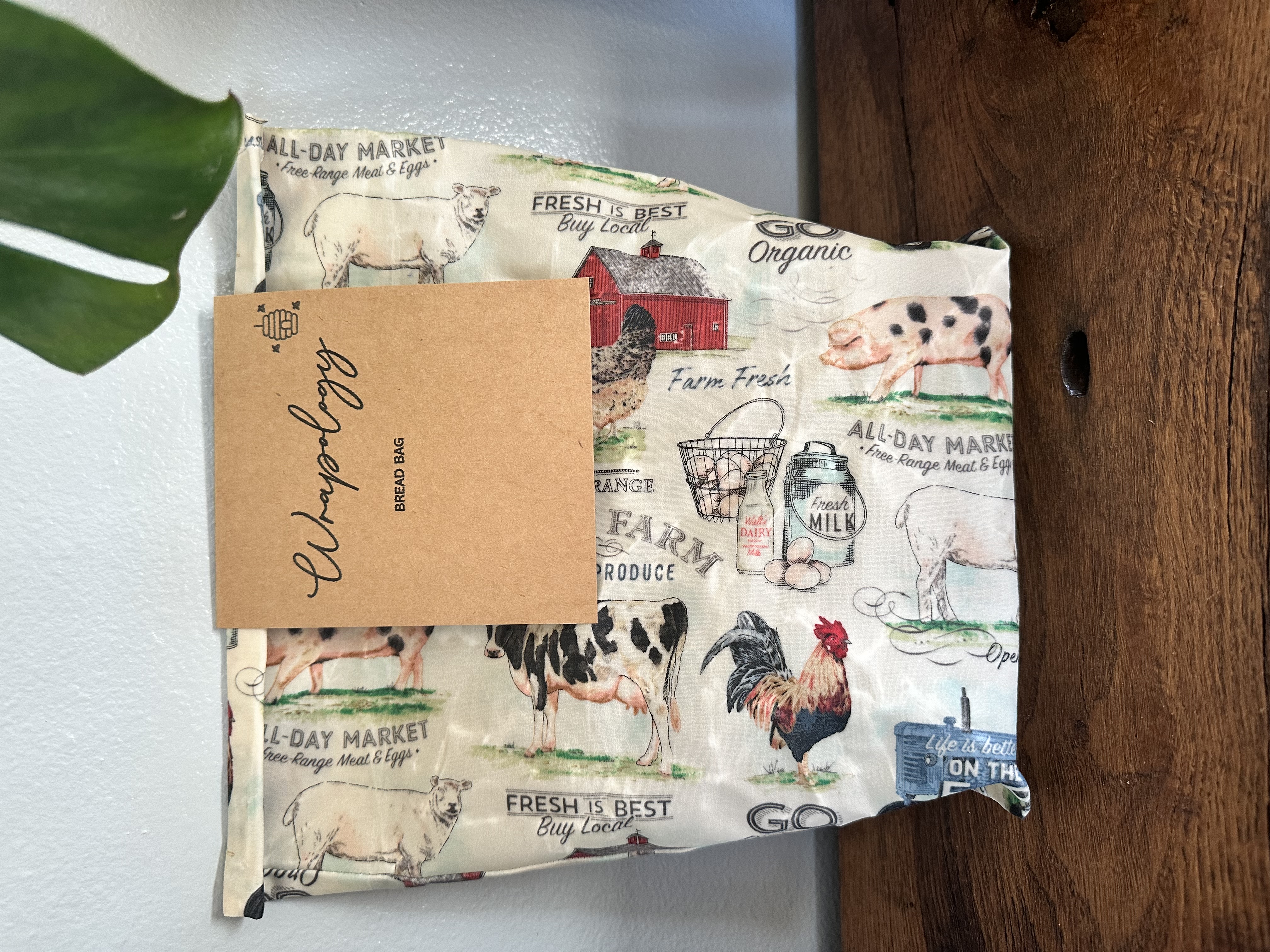 Featuring an adorable farm animal print, this bread bag brings a touch of nature and intention into your kitchen.