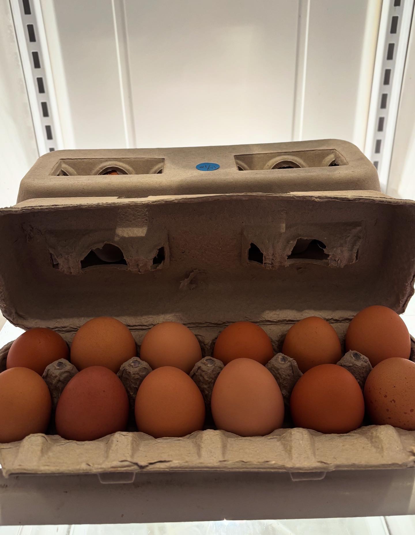 Farm Fresh Eggs from cage free chickens, raised with non-GMO feed. Supplemented with insects and fermented feed!