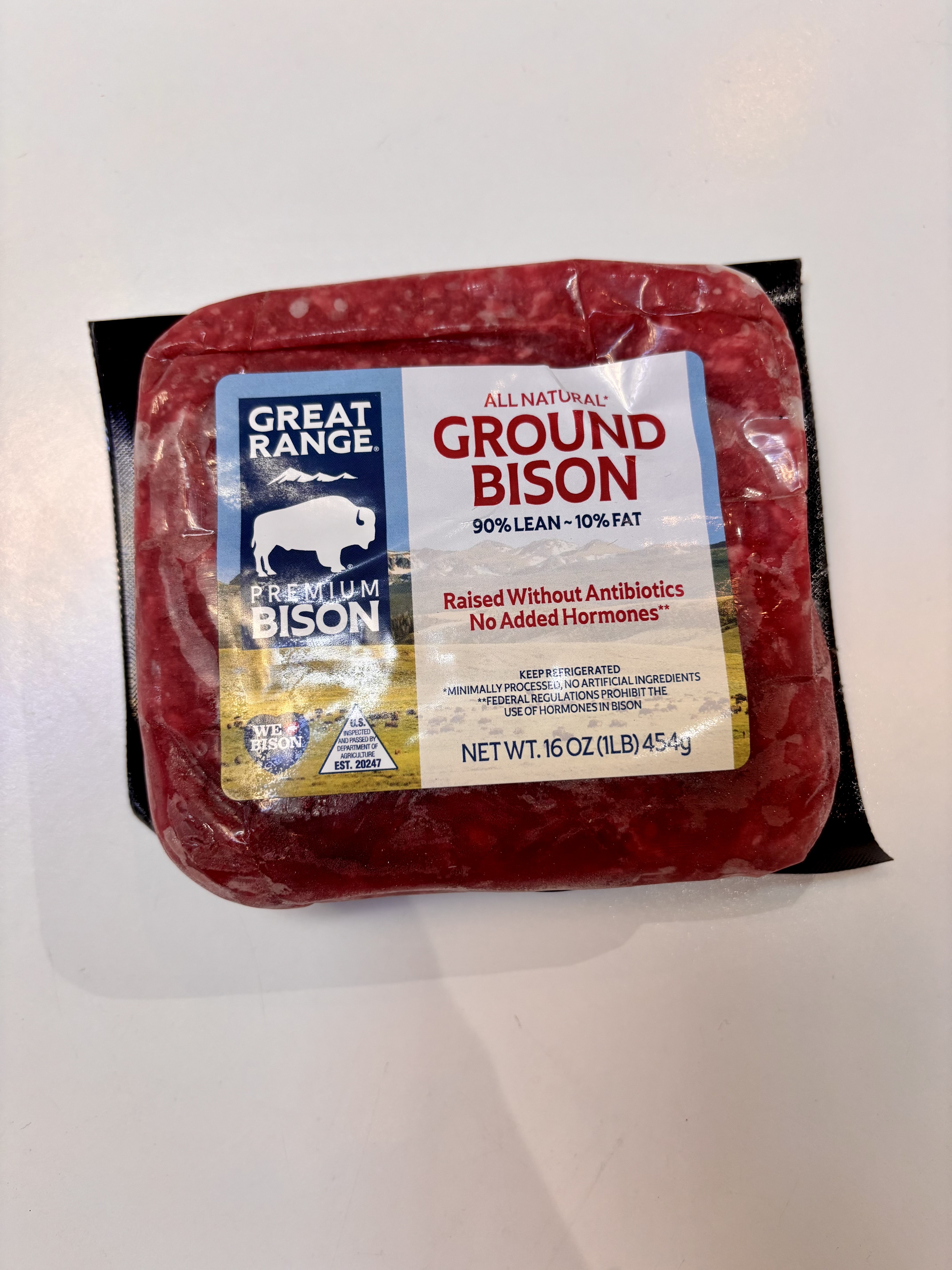 Great Range Premium Bison, minimally processed and raised without antibiotics or hormones.