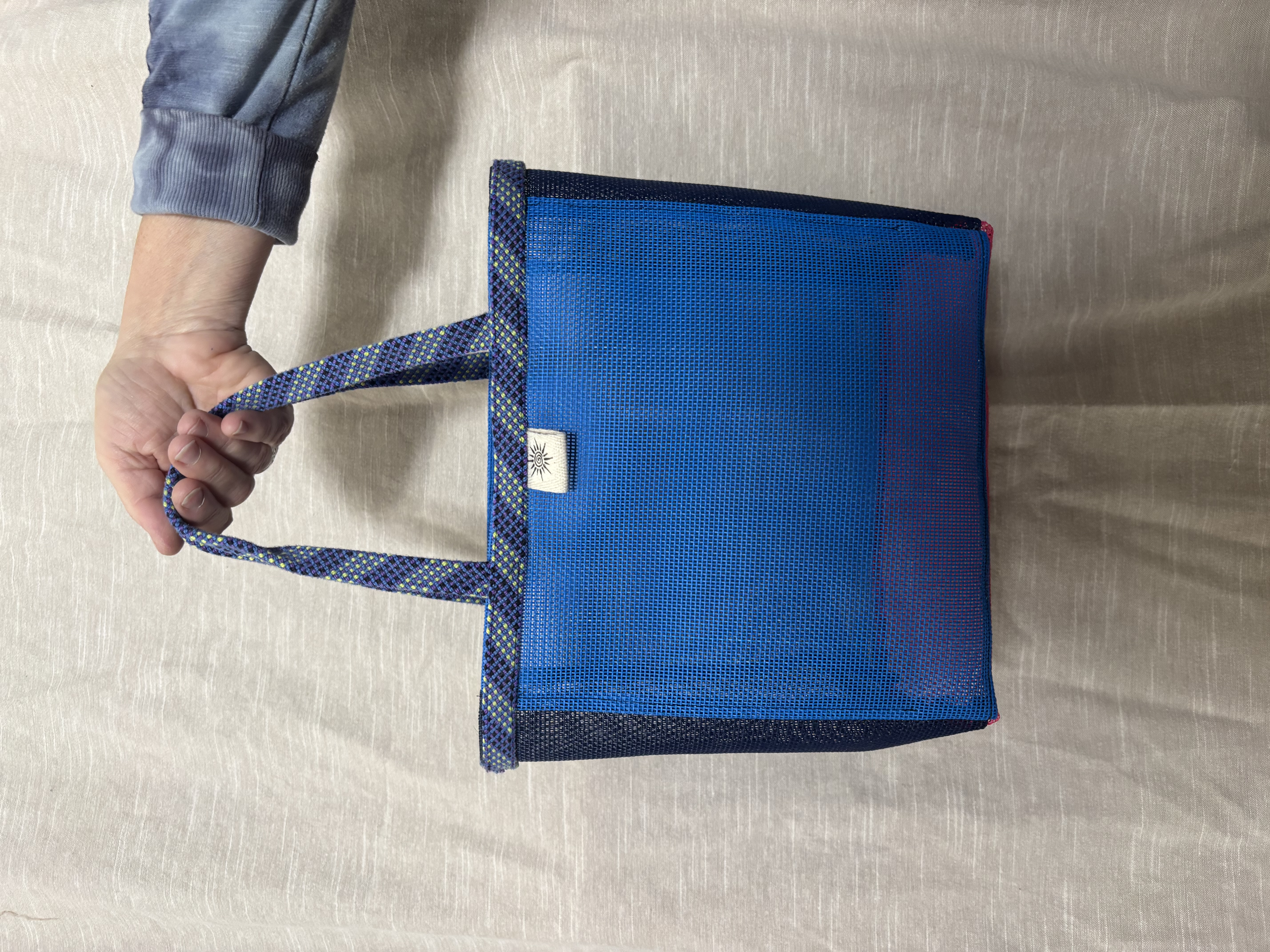 Main bag body: locally sourced upcycled river bag mesh