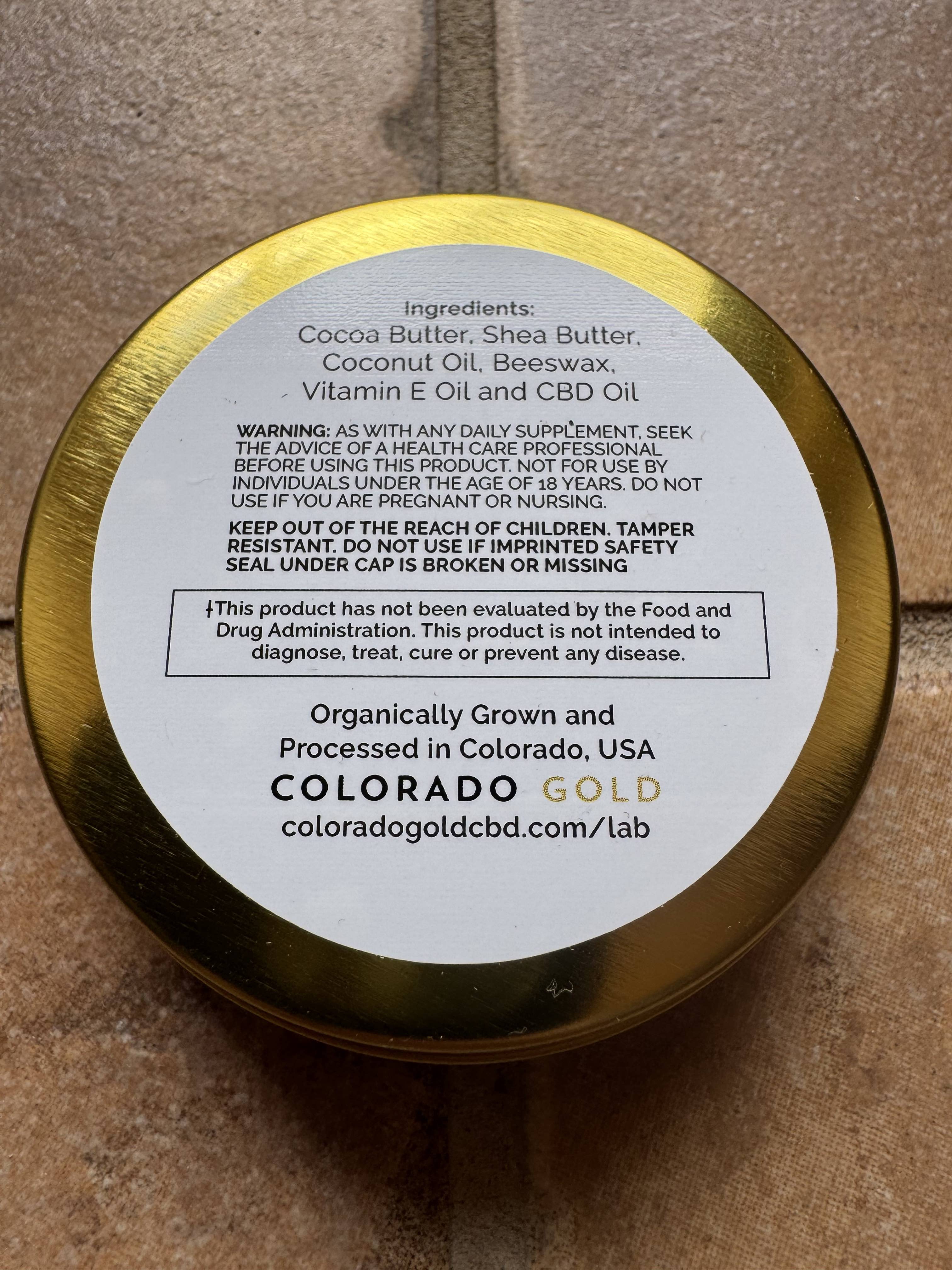 Ingredients: Cocoa Butter, Shea Butter, Coconut oil, Beeswax, Vitamin E oil and CBD oil, with a hint of local lavender oil