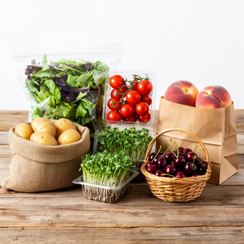 Owner Curated Seasonal Produce Bundle 2-3 items of: Salad Greens, Cherry Tomatoes, Bag of Peaches, Bag of Potatoes
