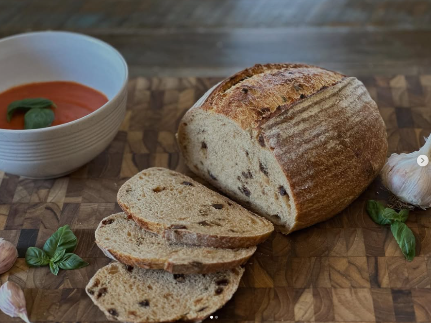 Experience the perfect balance of comfort and artisan craftsmanship with this homemade Tomato Basil Sourdough Loaf. Baked with a slow-rise sourdough starter and folded with sun-dried tomatoes, roasted garlic and basil, every slice is rich, fragrant, and full of rustic flavor. The crust is beautifully blistered and golden, while the interior stays soft, tangy, and studded with savory bursts of tomato.