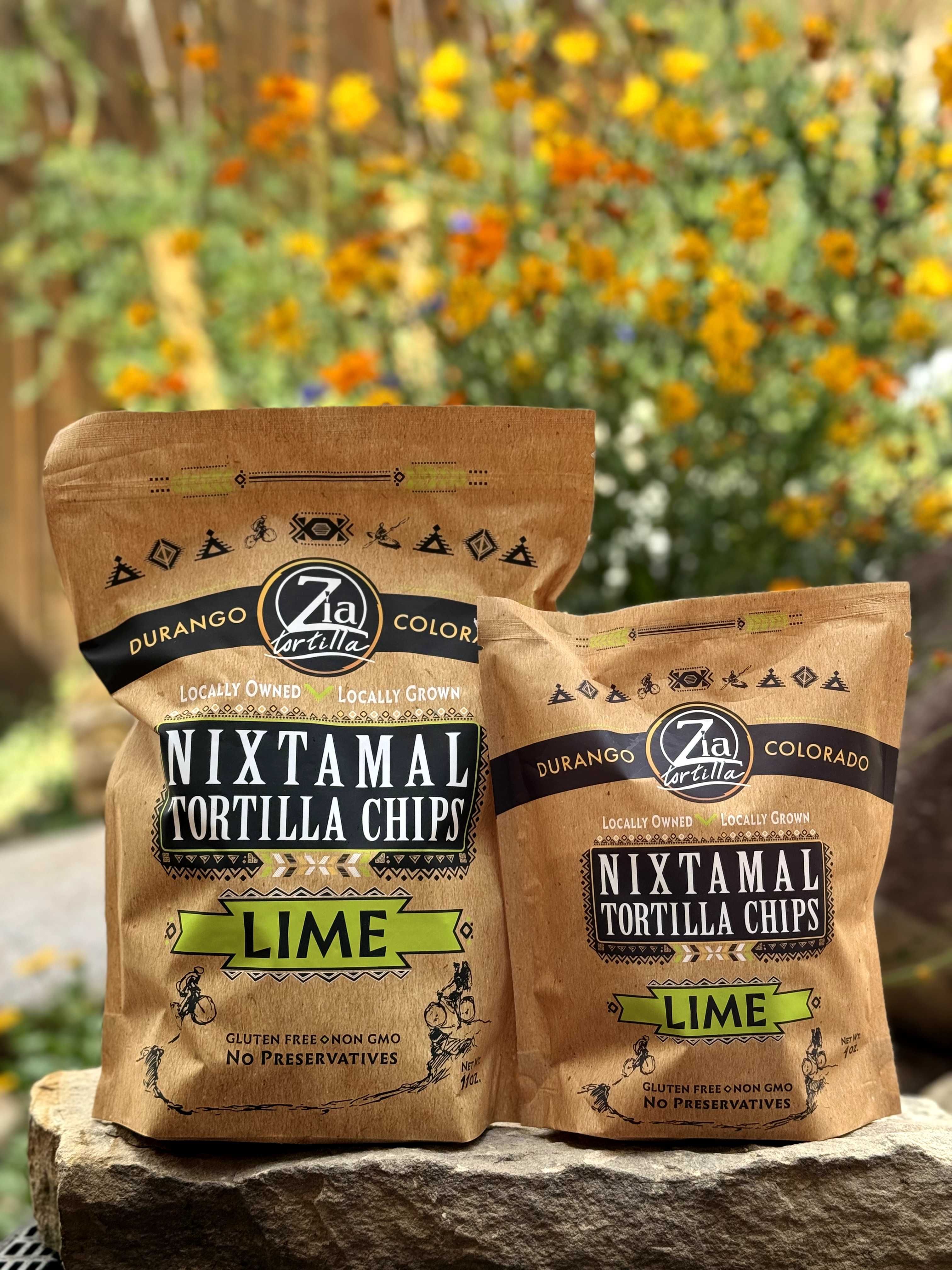 Zia’s Nixtamal Tortilla Chips have just three locally sourced ingredients: Non-GMO Southwest Colorado corn, Redmond Real Salt from central Utah, and sunflower oil from Lamar, Colorado. No preservatives, gum, or paste additives here!